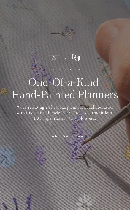 I also managed a collaboration with a local artist. We released a collection of special-edition painted planners. I created a campaign shot list for the artist and managed communication with her.